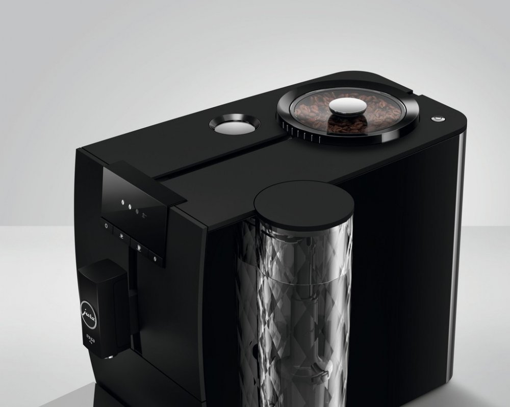 Model ENA 4 je jen 27,1 centimetrů široký, 32,3 centimetrů vysoký a 44,5 centimetrů hluboký – tím najde své místo kdekoliv. I vzhledově dokáže nadchnout. Varianty Full Metropolitan Black a Full Nordic White reprezentují jasnost a prostou eleganci; válcovitá nádržka na vodu v diamantové optice dodává výrobku stylový akcent.