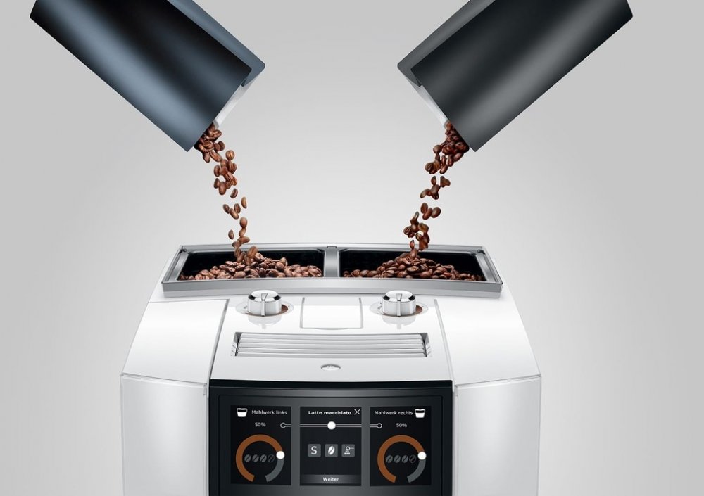 Kávová specialita s kofeinem nebo bez kofeinu? Tmavě pražené espresso nebo jemná směs pro lungo? Kávovar J8 twin od značky JURA, je vybaven dvěma vícestupňovými vysoce výkonnými kuželovitými mlýnky. Formálně slučuje dva automatické kávovary v jeden, ukončuje dosavadní volbu buď a nebo, a umožňuje řešení obojí volby.