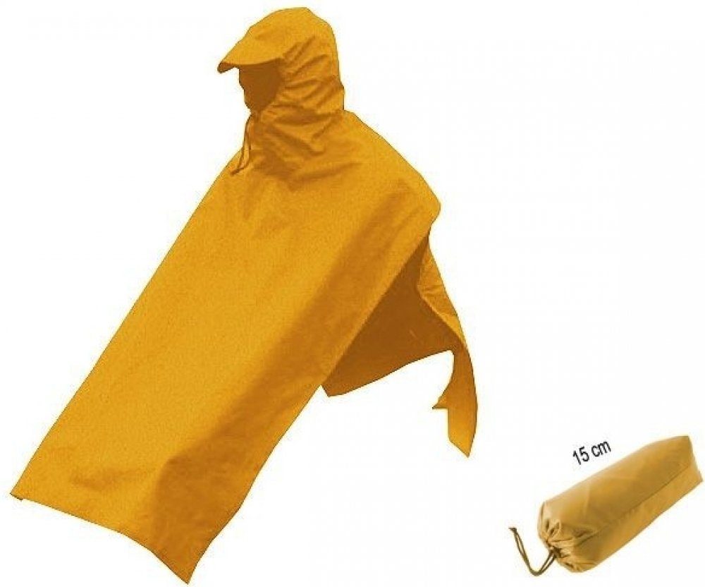 Nepropustná pláštěnka pro cykloturisty. Jedná se o pončo jednoduchého střihu s kapucí s kšiltem.