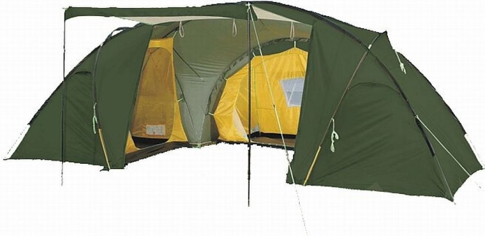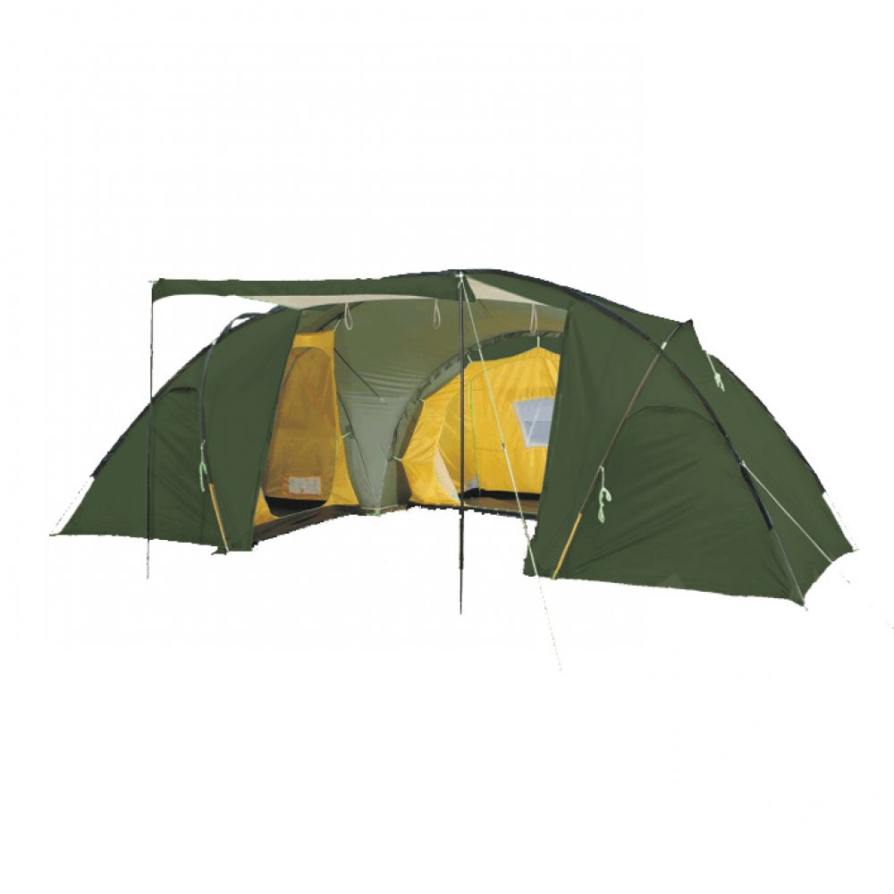 Hlavní vchod lze dostatečně rozepnout a vytvořit před jedním z nich pomocí vzpěr přístřešek proti slunci i mírnému dešti. Ke kotvení slouží úchyty na hranách.