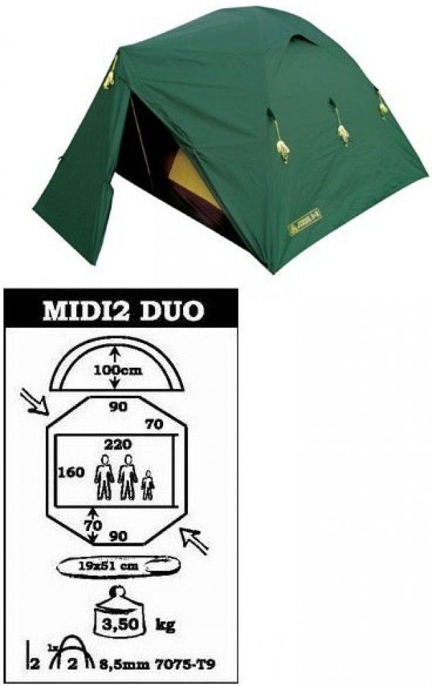 Je dvouvchodový dvouplášťový "kopulovitý" stan, obdélníkového půdorysu podlahy, vhodný pro všechny druhy turistiky až do středně náročných podmínek a pro četnější užívání! Stan lze používat i v zimě (doporučujeme našití "límce" po obvodu tropika).