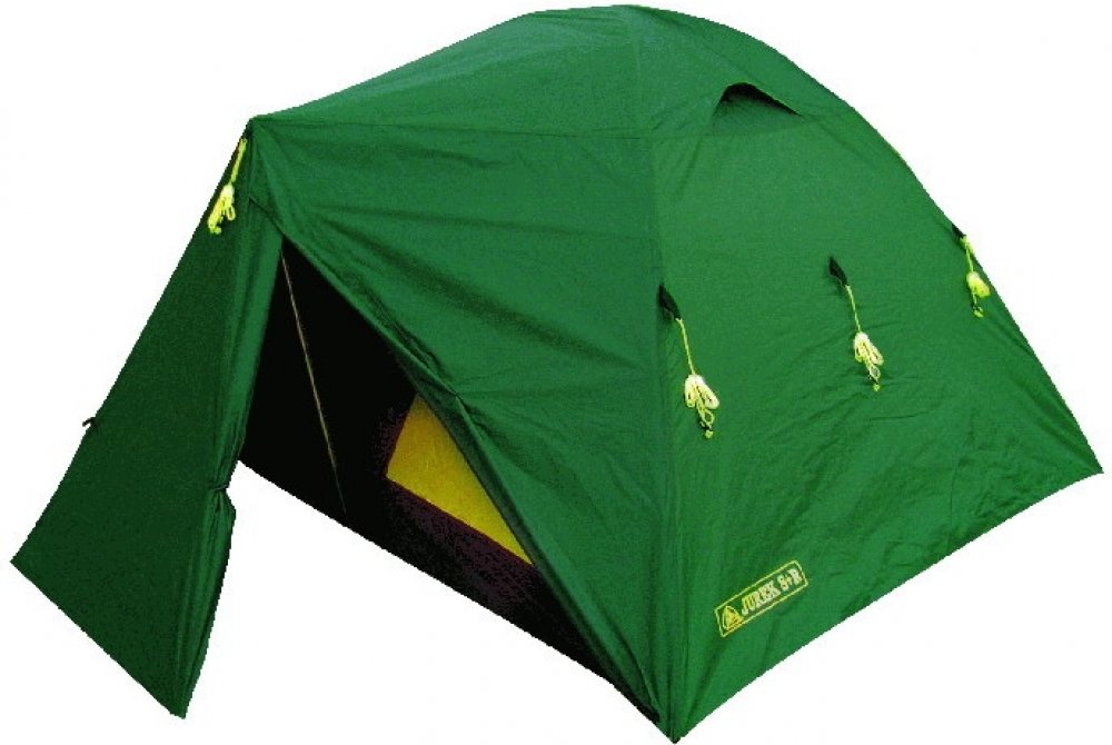 Popis: 1. Vzpěra předsíně podstatně zvyšuje stabilitu stanu. 2. Velká a prostorná předsíň, vhodná i k vaření. 3. Osvědčené kryté větrání. 4. Osvědčené zavěšení vnitřku pomocí šňůr a háčků usnadňuje a zrychluje stavbu.