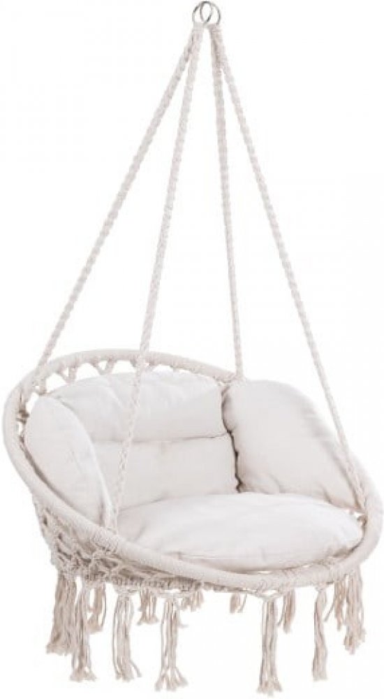 Závěsné křeslo nabízí vysoký komfort sezení se 2 polštáři. Vysoké opěradlo a hrubé polstrování polštářů se přizpůsobí tvaru těla, jsou ergonomické a pohodlné pro vaše záda. Závěsné křeslo má robustní pozinkovaný rám a dá se snadno zatížit až 150 kg. Díky dvěma pevným kovovým kroužkům lze závěsné křeslo houpat ve všech směrech.