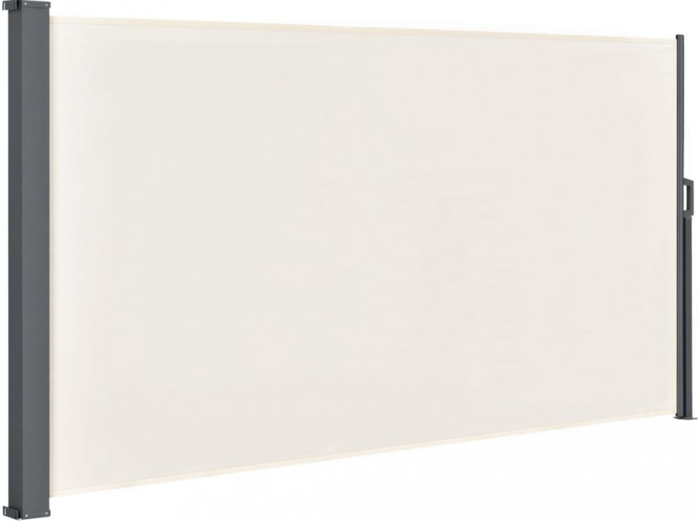 Boční markýza Dubaj v béžové barvě 300 x 200 cm. 2 metry vysoká a 3 metry dlouhá boční roleta zaujme moderním designem, materiálů odolných vůči povětrnostním vlivům a individuálně nastavitelnou délkou. Chraňte svůj balkon nebo terasu před sluncem nebo větrem. Protože je boční markýza svinutá v kazetě, můžete látku snadno vytáhnout na vámi zvolenou délku. Máte možnost přizpůsobit svou markýzu svým individuálním potřebám, aby byla vaše terasa nebo zahrada chráněna před sluncem a větrem. Celkově má moderní příčka výšku 2 m a maximální délku 3 m. Konstrukce markýzy je jednoduchá. Všechny šrouby a hmoždinky, které potřebujete, jsou součástí balení, abyste mohli hned začít. Po připevnění boxu markýzy na vhodnou stěnu stačí zvolit požadovanou vzdálenost mezi sloupkem markýzy a ukotvit ho v zemi. Díky svému polyuretanových povlaku je příčka také zcela vodoodpudivá. Tímto způsobem ochrana proti slunci snadno odolá i slabým dešťovým přeháňkám. Při silném větru a dešti nebo v zimě markýzu snadno skryjete.