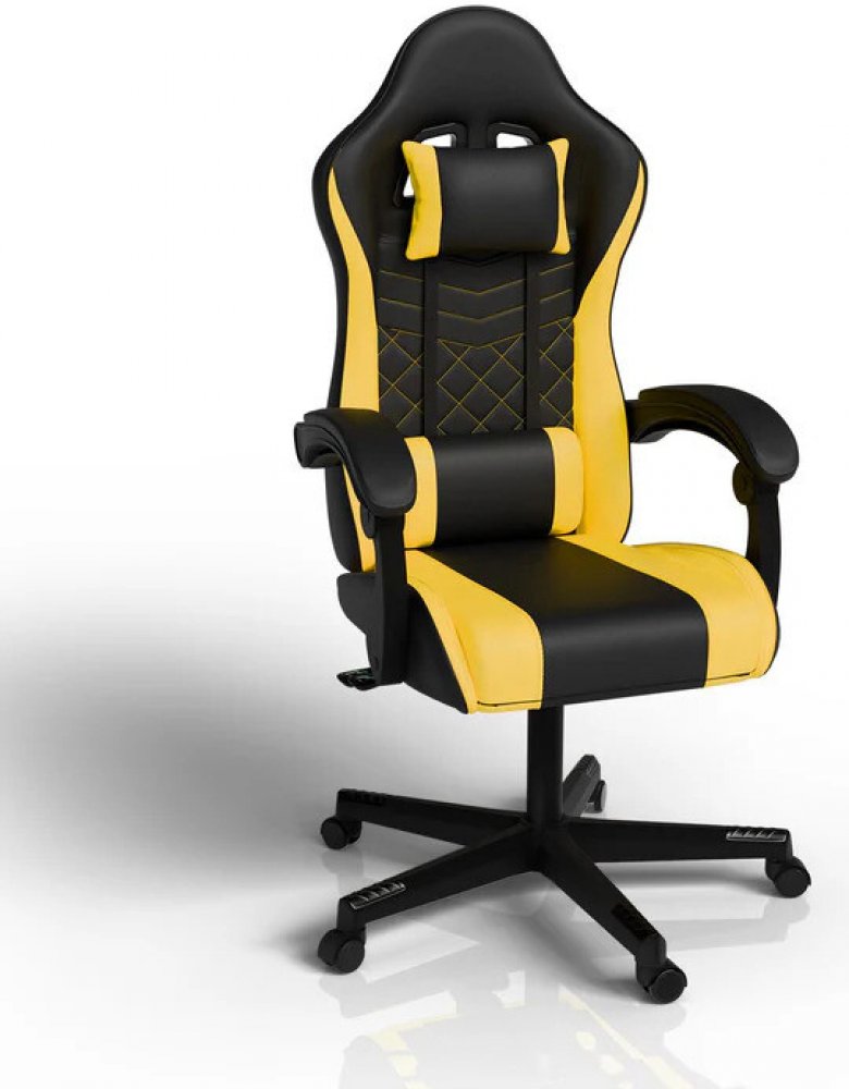 Kancelářská židle ideální do vaší kanceláře nebo pro hraní herTato kancelářská židle nabízí ergonomické pohodlí, nastavitelné opěradlo s polštářem na krk a záda a robustní konstrukci. Je výškově nastavitelná a má nosnost až 120 kg. Povrch židle je potažen snadno udržovatelnou umělou kůží, takže je ideální do kanceláře nebo na hraní her. Díky individuálně nastavitelnému opěradlu a optimální výšce sedáku si židličku nastavíte tak, abyste si zajistili pohodlí a komfort při delším sezení. Nylonová základna a vysoce kvalitní materiály poskytují bezpečnou oporu i pro větší a těžší uživatele. K čištění použijte měkký, vlhký hadřík no nepoužívejte agresivní ani abrazivní čistící prostředky.Technické specifikace:Barva: černá/žlutáMateriál opěradla: dřevoMateriál područek a krytu plynové pružiny: plastZákladní materiál: nylon (Ø 320 mm)Materiál potahu: PVC umělá kůžeČistá hmotnost: 12,8 kgNosnost: max. 120 kgRozměry:Židle (ŠxHxV): 63 x 67 x 121–131 cmOpěradlo (ŠxV): 52 x 74 cmVýška sedáku: 47–57 cmTloušťka sedáku: 10 cmRozsah doručení:1 x kancelářská židle
