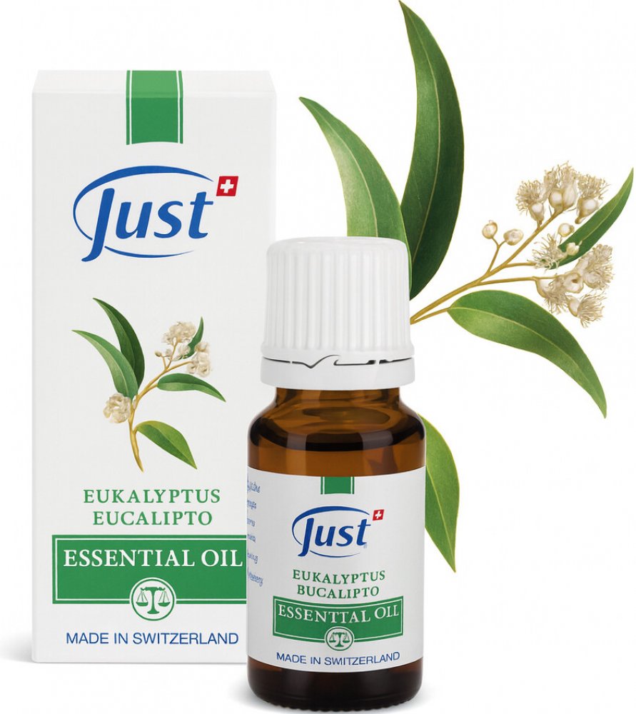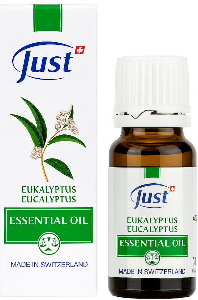 JUST Eukalyptový olej je 100% přírodní esenciální olej získávaný z listů eukalyptu (Eucalyptus Globulus). Jeho svěží a chladivá vůně má výrazné antiseptické vlastnosti, podporuje dýchací systém a osvěžuje mysl.