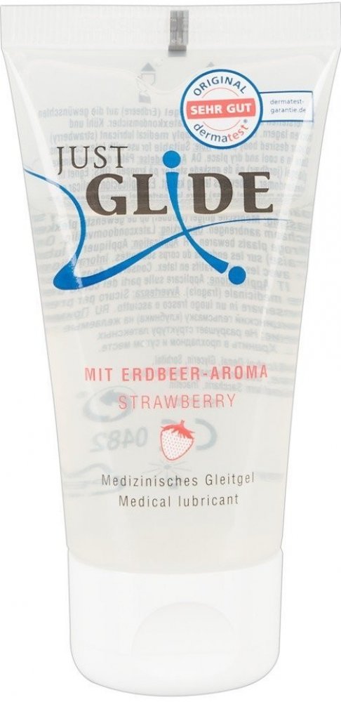 Just glide s chutí jahod, je dobře snášenlivý gel s pokožkou a to i s citlivější. Díky absenci jakýchkoliv olejů a tuků je dobře omyvatelný vodou. Chuťově a pachově neutrální.