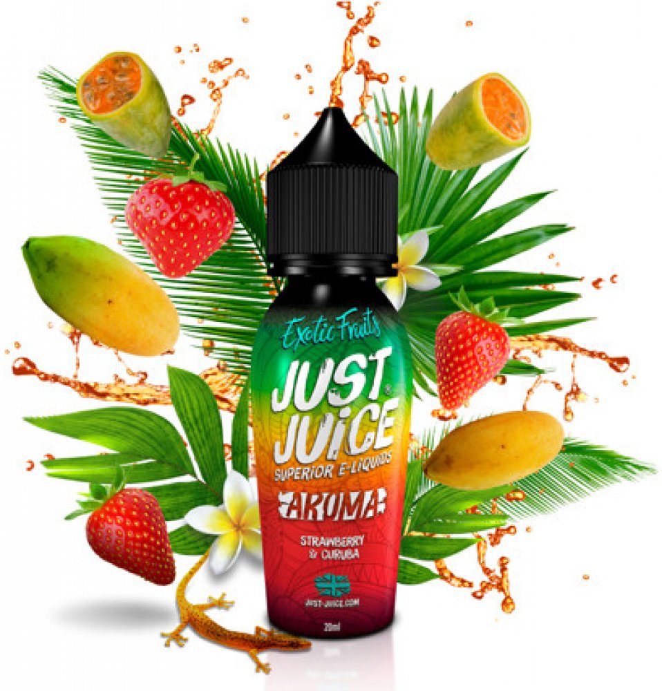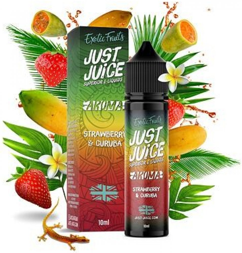 Další okouzlující mix z dílny britského výrobce Just Juice představuje jedinečnou a originální kombinaci chutí. V základu najdete dva druhy ovoce, které se báječně propojují. Prvním z nich je tradiční vyzrálá a šťavnatá jahoda s typicky sladkou a vláčnou chutí. Jahodu potom doplňuje exotická curuba až z daleké Kolumbie. Toto ovoce se chuťově podobá jablku a dodá celé příchuti ten správný říz.