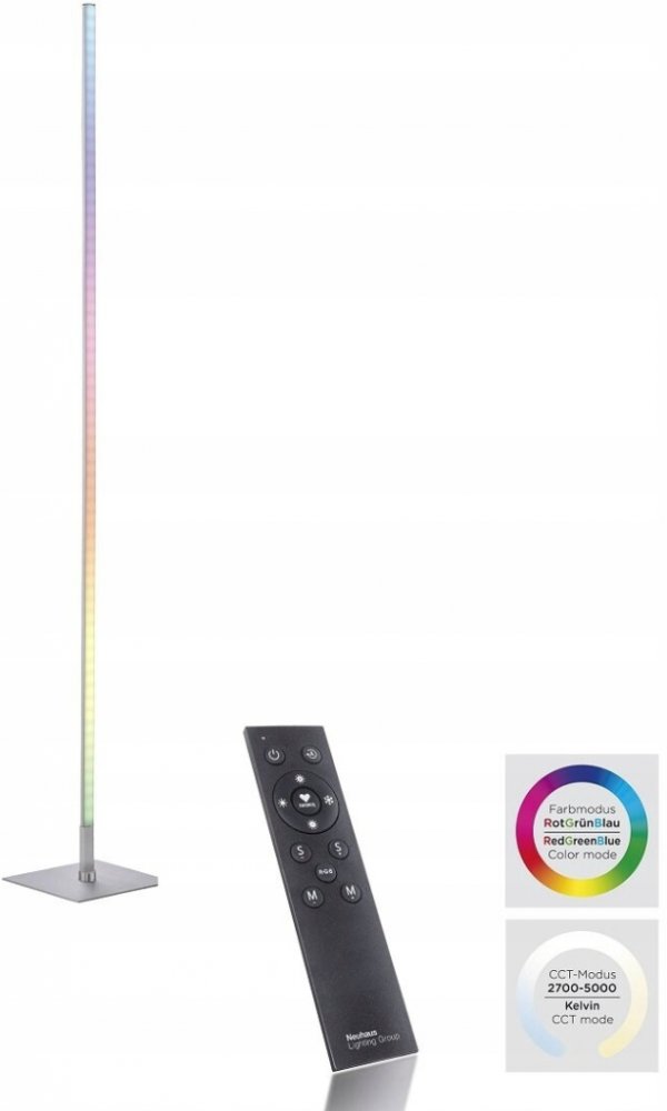 Se stojací lampou Henry LED můžete ve svých čtyřech stěnách vykouzlit skvělé světelné efekty, protože kromě různých odstínů bílé barvy nabízí také barevné efektní světlo. Úzkou světelnou tyč lze otáčet, takže světlo může svítit přímo nebo nepřímo do místnosti. Dodávaným dálkovým ovladačem lze světlo zapínat, nastavovat jas, přepínat na různé odstíny bílé nebo dokonce na barevné efektové světlo. Na dálkovém ovladači je také paměťová funkce a 12 předinstalovaných světelných scénářů, takže lze vytvořit to správné světlo pro každý okamžik. - Otočná světelná plocha - Ovládání barev RGB a bílého světla - Lze ovládat pomocí dodaného dálkového ovladače - Stmívatelné - Obsahuje paměťovou funkci Mladé a dynamické hodnoty charakterizují značku JUST LIGHT. - dříve známá jako Leuchten Direkt.