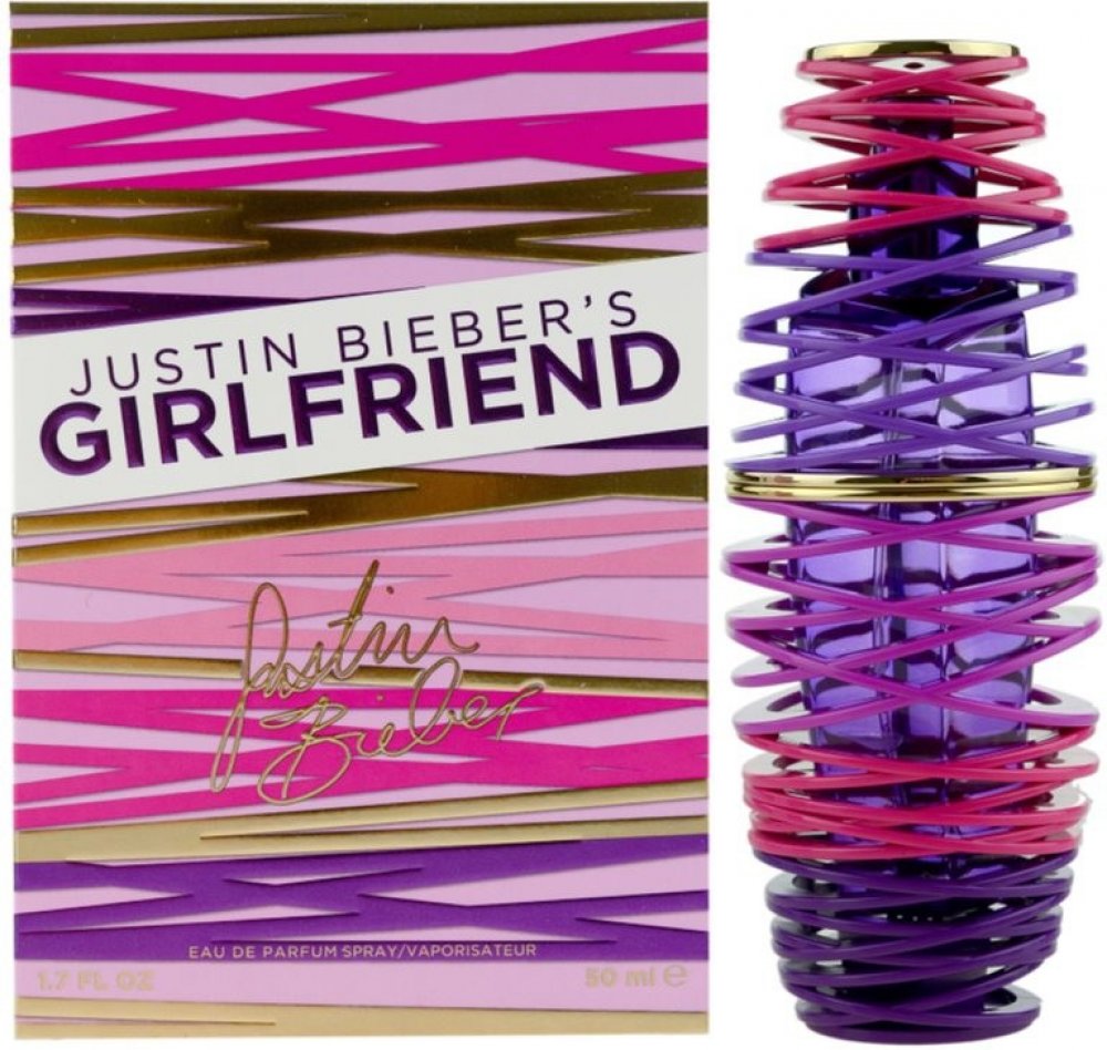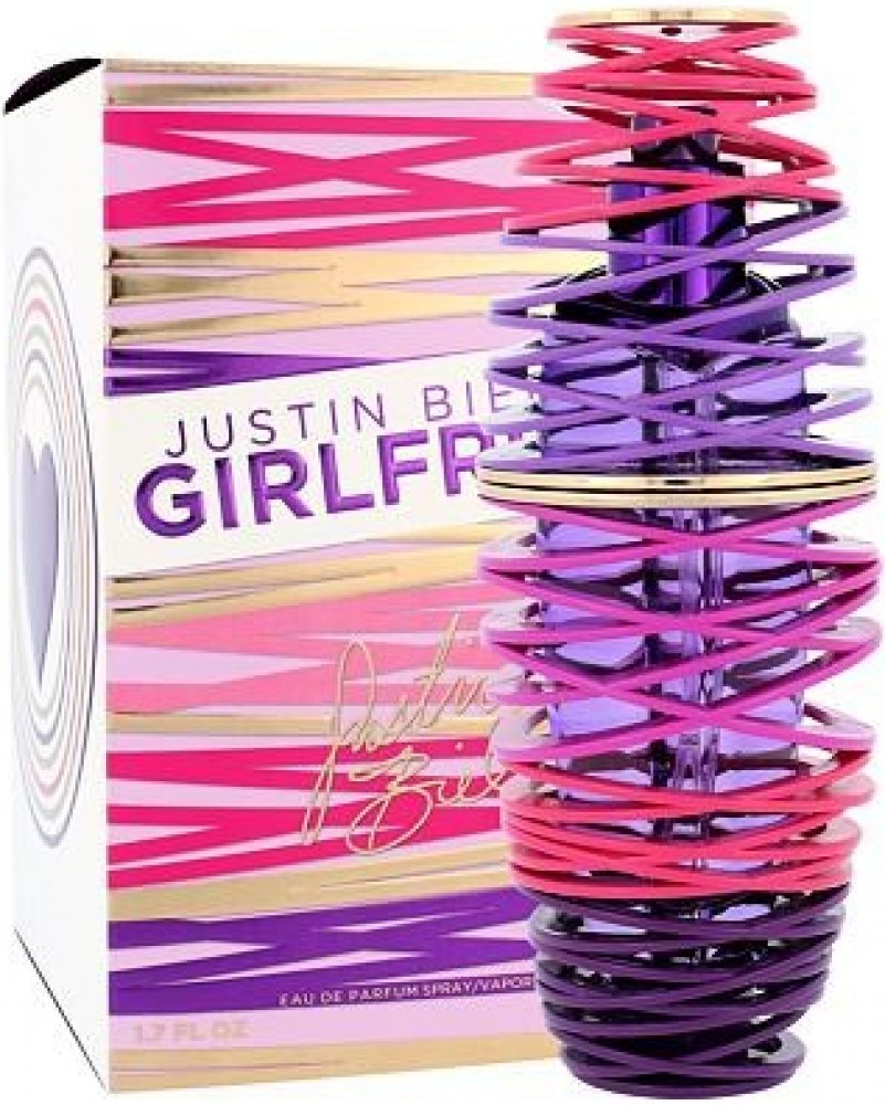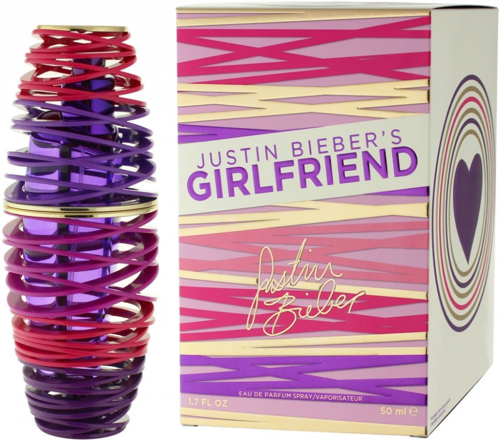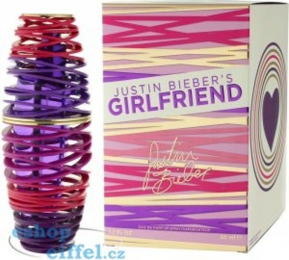 Justin Bieber 50 ml dámské parfémované vody ovocné svěží a energické Girlfriend 2012 celebrita hrušky, jahody, mandarinky, ostružiny pomerančové květy, frézie, jasmín, meruňka bílá ambra, pižmo, orchidej letní s hruškou, s jahodami, s mandarinkou, s ostružinami klasické TSA kompatibilní (≤100ml) rozprašovač 0 g standardní
