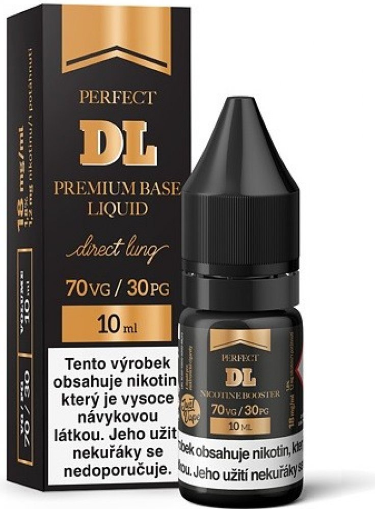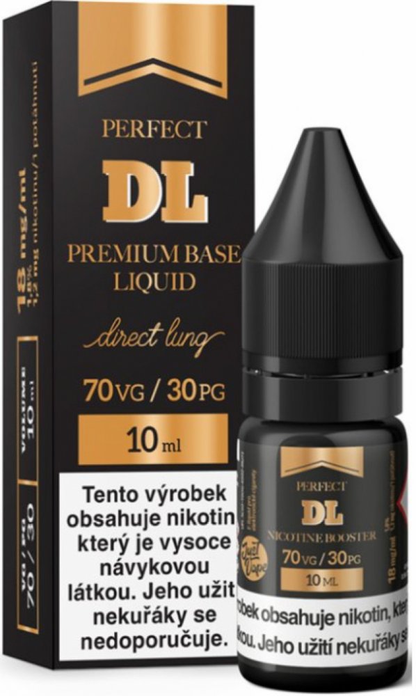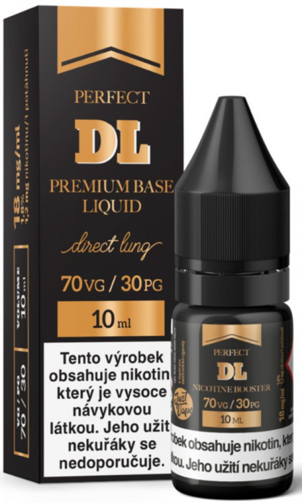 Booster báze JustVape DL s obsahem nikotinu 18mg/ml slouží jako doplněk pro beznikotinové báze k namíchání přesné požadované koncentrace. Poměr látek PG / VG je 30% / 70%, díky tomu je vhodná pro výkonné elektronické cigarety používané pro přímý potah do plic (DL).