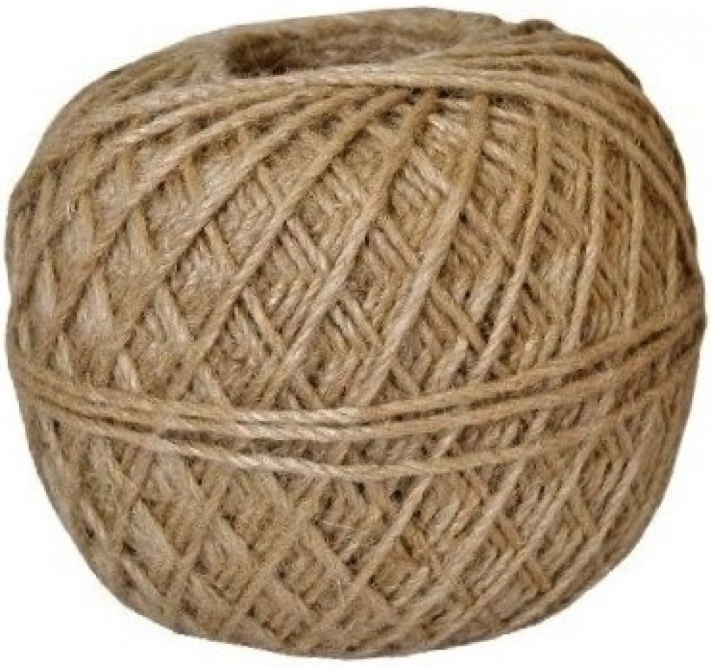 Malé klubíčko jutového provázku, hmotnost 50 g (+- 10%), nosnost 13 kg (+- 10%), průměr motouzu 1,25 mm (+- 10%).