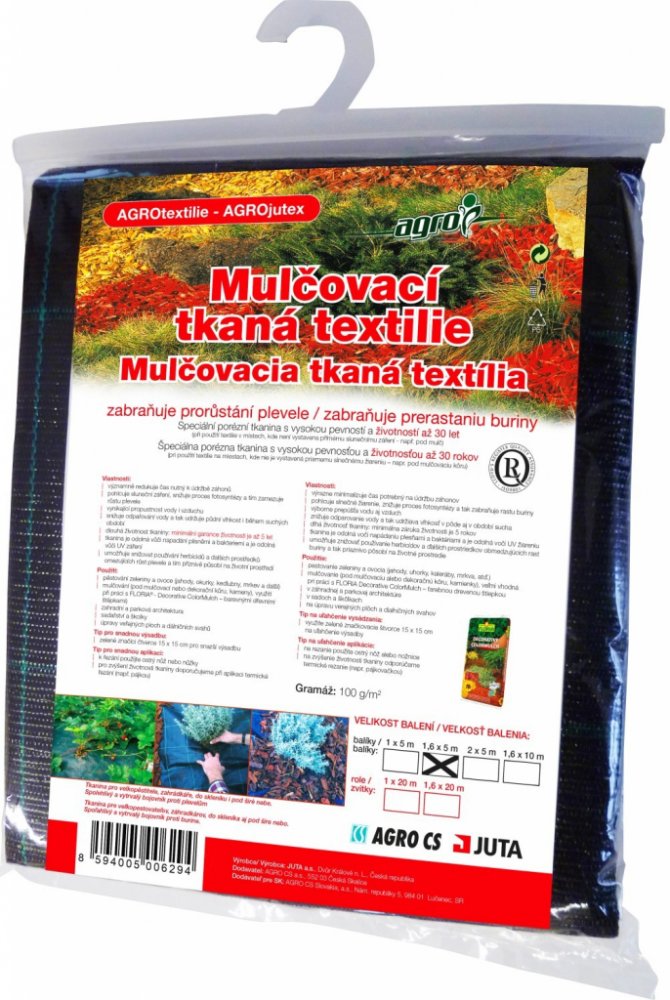 Agro mulčovací tkaná textilie je speciální porézní tkanina, která svým určením zabraňuje prorůstání plevele, výborně propouští vodu i vzduch, snižuje odpar vody, je odolná vůči plísním a bakteriím, snižuje nutnost používání herbicidů a výrazně zkracuje čas potřebný na údržbu záhonů. Tkanina vyniká svojí pevností. Je určena pro pěstování zeleniny a ovoce nebo pod mulčovací a dekorační materiály.