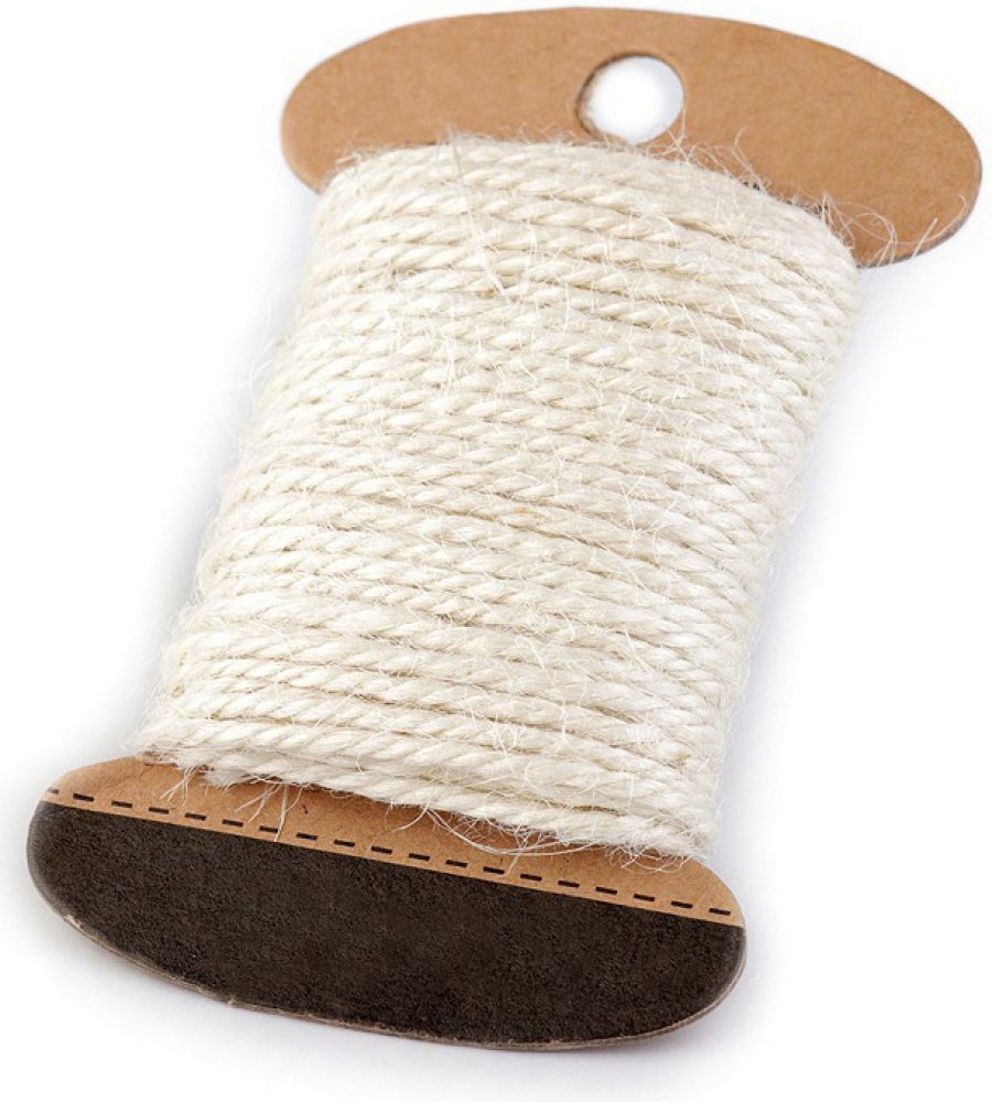 Přírodní jutový provázek je pevný a spletený ze tří tenčích šňůr. Je skvělým pomocníkem ve floristice a jiných dekoračních technikách. Provázky jsou navinuty na papírových kartách s dírkou, můžete je pohodlně zavěsit na prodejní stojan.