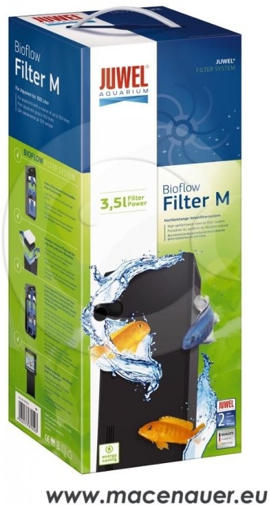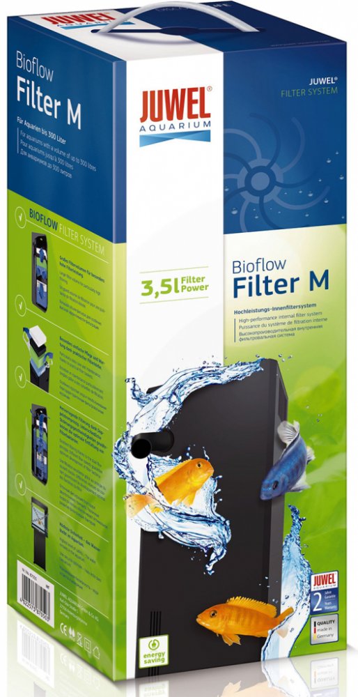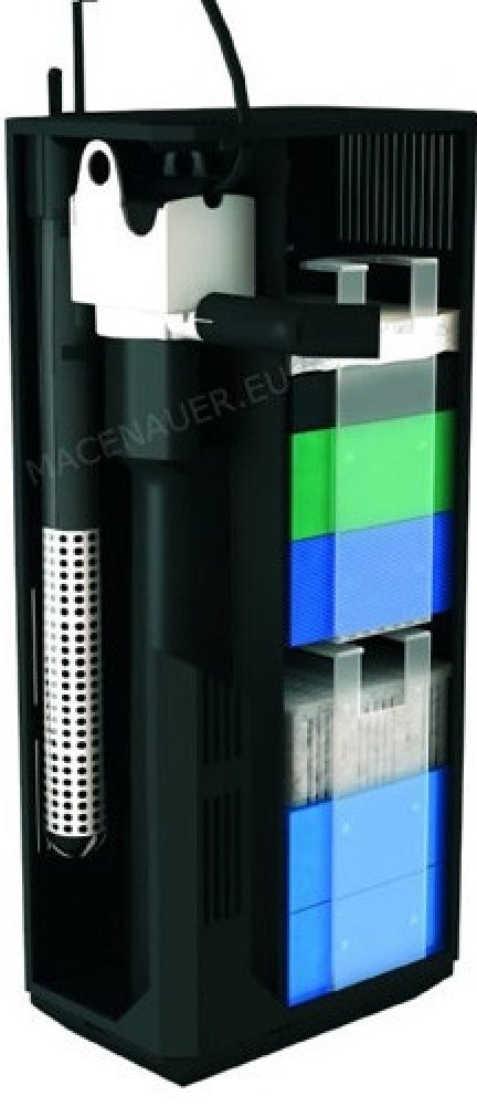 Dvoufázový biologický vnitřní filtrační systém, včetně čerpadla a filtračních materiálů. Filtrační systém lze jednoduše instalovat pomocí akvarijního silikonu.