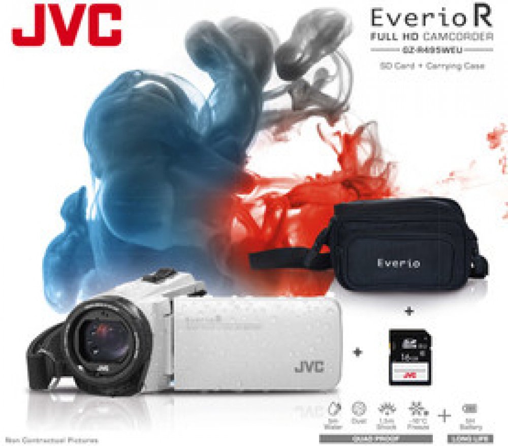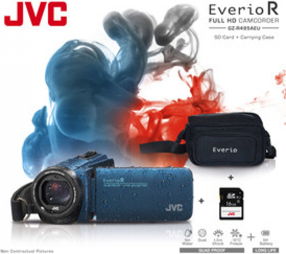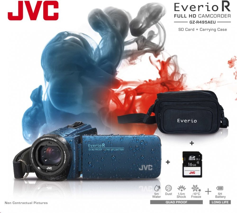 Video kamera JVC GZ-R495WKIT je ideální kamerou do terénu. Je odolná vůči pádu z výšky 1,5 metrů, vodotěsná (do 5 metrů), mrazuvzdorná (-10 °C) i prachuvzdorná. Kamera snese ty nejpřísnější měřítka zacházení.