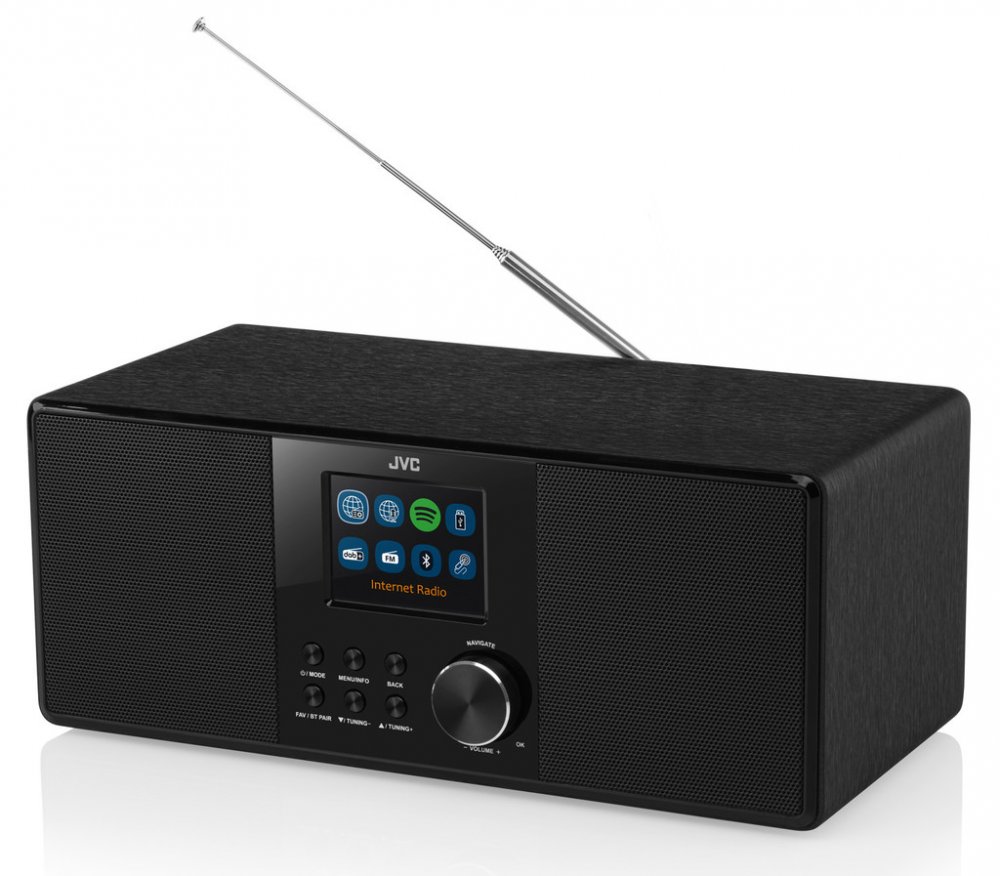 Moderní doba výrazně rozšířila nabídku audio obsahu. Proto rádio JVC RA-E981B nabízí široký výběr jeho příjmu. Naladit lze rozhlasové stanice v moderním DAB+, ale i klasickém FM, pásmu. V obou případech umožňuje přístroj naladit a uložit 40 předvoleb. Pokud se nespokojíte s lokální rozhlasovou nabídkou, oceníte možnost poslechu internetových rádií z téměř celého světa. I v tomto případě lze do paměti uložit až 40 předvoleb. Pro využití této funkce je potřeba přístroj připojit k internetové WiFi síti.