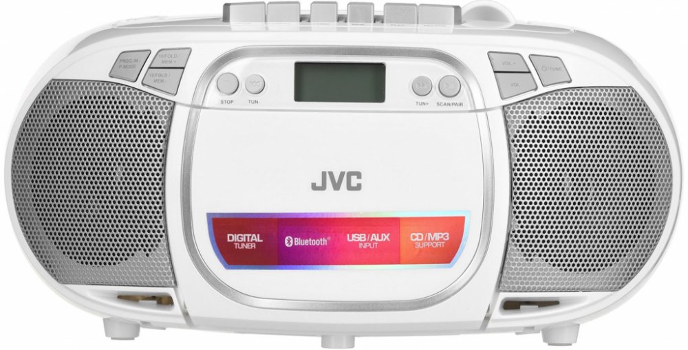 JVC RC-E451W je vybaven i FM tunerem s možností uložení až 30 stanic. S přehledným LCD displejem bude ladění i další nastavení a ovládání přehrávače velmi snadné a intuitivní. Radiomagnetofon můžete napájet síťově, nebo za pomoci baterií.