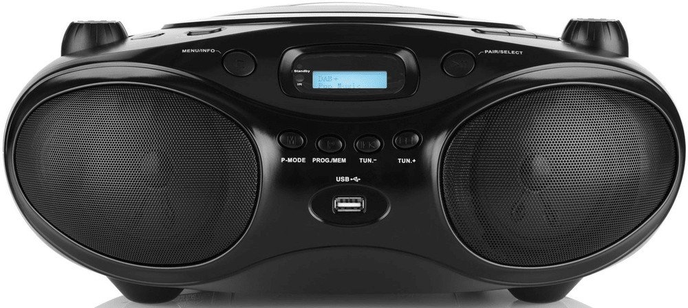 Přehrávač s CD, DAB+/FM tunerem, Bluetooth, USB vstupem, podpora MP3, AUX vstup, sluchátkový výstup, černý