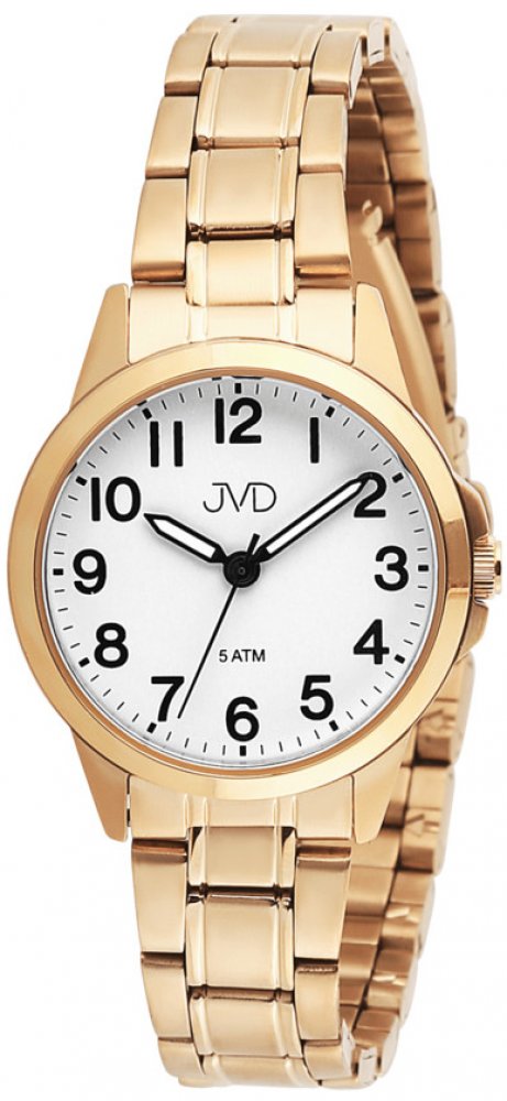 JVD analogové ocel elegantní dámské bateriové - quartz pro běžné použití (30–50 m) 28.0 mm ocel 50 m bateriové minerální bez osazení kulaté zlatá bílá s luminiscencí překlápěcí spona 1.4 cm na ruku japonské s arabskými číslicemi zlatá ocel 2.8 cm malé 14.0 mm s dočasným svícením (luminiscence/LED)