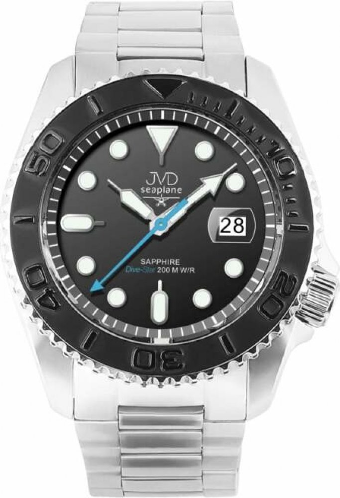 JVD analogové ocel elegantní pánské bateriové - quartz pro potápění (100+ m) 45.0 mm ocel 200 m bateriové 350.0 g safírové Seaplane kulaté stříbrná černá s luminiscencí na závit 2.4 cm na ruku české bez číslic velké 24.0 mm 45 mm s dočasným svícením (luminiscence/LED) s nenáročnou údržbou (quartz) bez chytrých funkcí