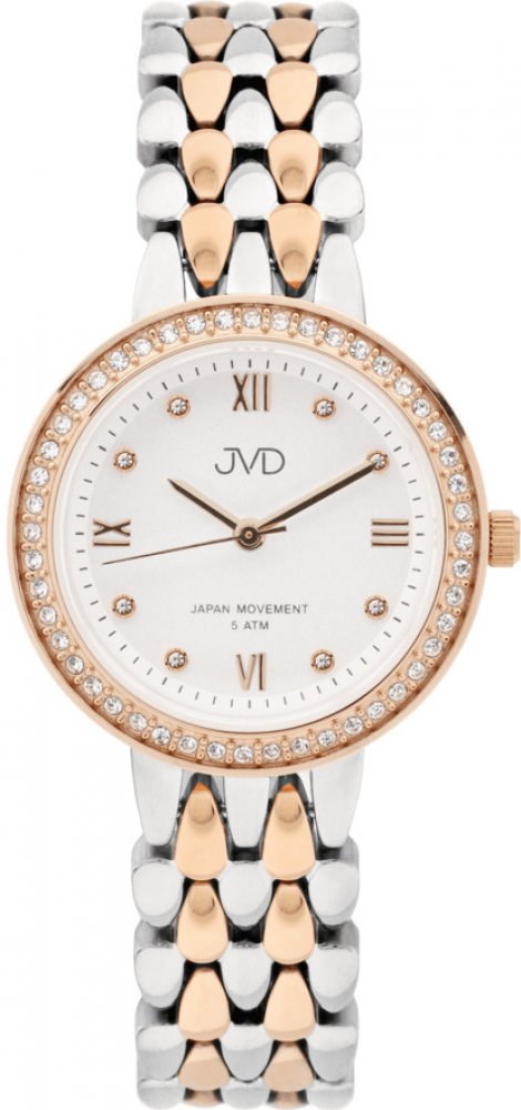 JVD analogové ocel elegantní dámské bateriové - quartz pro běžné použití (30–50 m) 29.0 mm ocel 50 m 250.0 g minerální zirkony JZ kulaté vícebarevná bílá na přezku 1.4 cm na ruku české s římskými číslicemi vícebarevná ocel 2.9 cm malé 14.0 mm s nenáročnou údržbou (quartz) bez chytrých funkcí