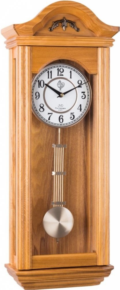 Dopřejte svému domovu dotek tradice a elegance s kyvadlovými hodinami JVD, které mistrovsky spojují klasický vzhled s moderní technologií. Hodiny zaujmou hned na první pohled svým nadčasovým designem inspirovaným historickými nástěnnými hodinami – masivní dřevěné provedení s jemnými detaily a povrchovou úpravou v několika přírodních odstínech přináší do interiéru hřejivou atmosféru a noblesu.