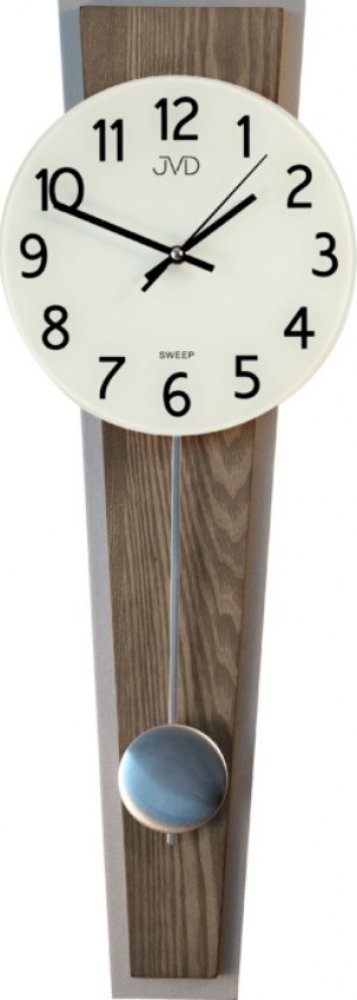 Moderní kyvadlové hodiny JVD NS17020/78 Moderní kyvadlové hodiny JVD jsou vyrobeny z lakovaného dřeva v barvě broušeného dubu, do kterého je uchycen číselník z mléčného skla. Hodiny jsou osazeny quartzovým (bateriovým) strojkem s plynulým chodem a čas zobrazuje dvanáct výrazných arabských číslic, díky nim je čas dobře čitelný i z větší dálky. Designové hodiny jsou ideálním bytovým doplňkem a v kan...