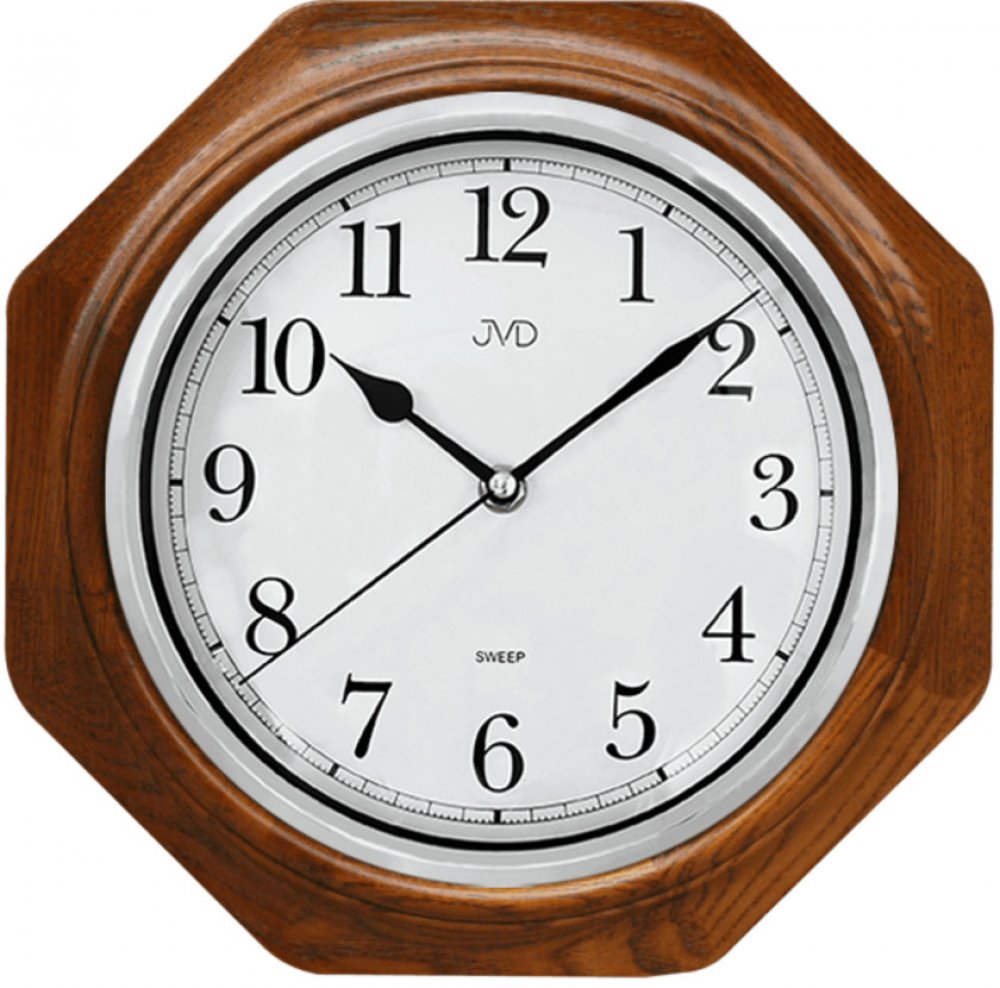JVD dřevo hnědé analogové nástěnné hranaté nástěnné