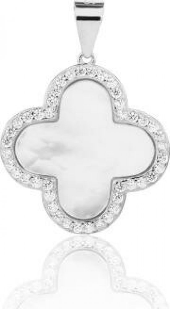 Ryzost: Ag 925/1000 Kategorie: přívěsek - stříbrný Výška: 25.0 mm Šířka: 18.0 mm Hloubka: 2.0 mm Povrchová Úprava: bez povrchové úpravy Barva: stříbrná, bílá, čirá Osazení: zirkon, perleť Materiál: rhodiované stříbro