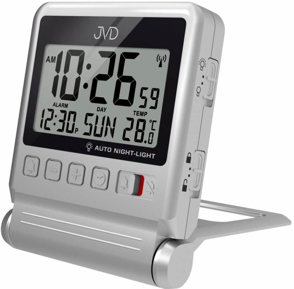 Budík digitální Q JVD RB9391.1 RC, cestovní stříbrný