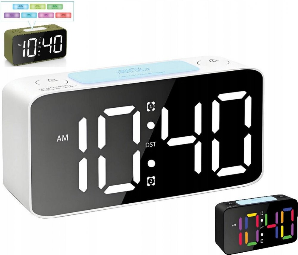 ✅ Napájení ze sítě, baterie jako záloha ✅ Dva nezávislé časy buzení – ideální pro páry nebo víkend ✅ Pět úrovní hlasitosti – od jemného po hlasité buzení ✅ Funkce opakovaného buzení (snooze) ✅ USB výstup pro nabíjení telefonu ✅ 7 barev tlačítka SNOOZE i číslic displeje ✅ Nastavitelný jas displeje