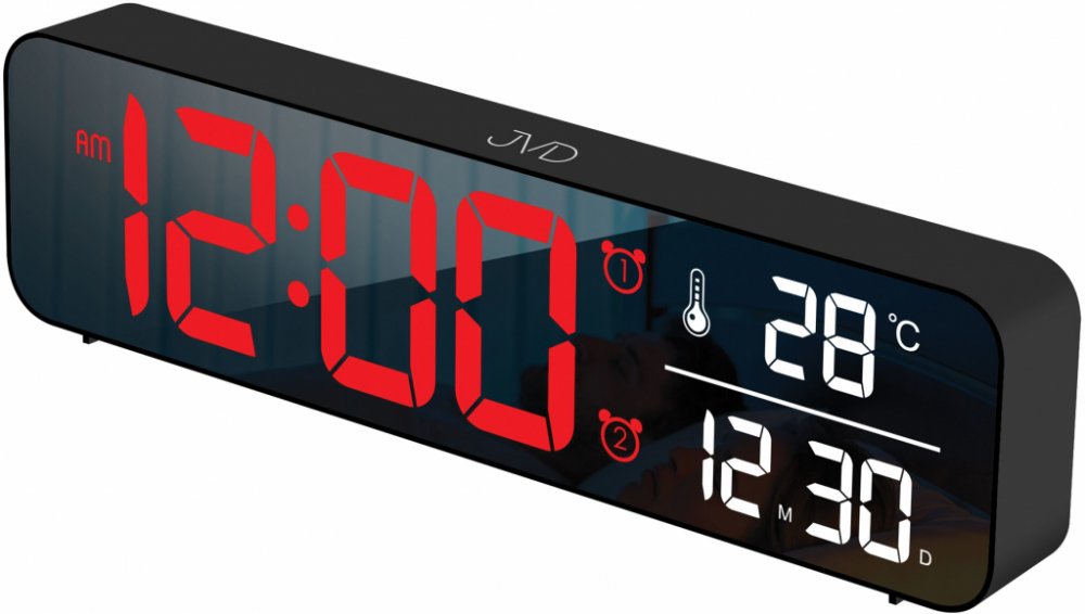 Svítící digitální budík JVD s jednoduchým, ale také moderním designem. Budík nabízí nejen příjemný vzhled, ale také spoustu funkcí. Displej je velmi dobře čitelný, obzvlášť díky kontrastu číslic na tmavém pozadí.