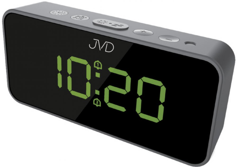 Digitální budík do sítě JVD SB3212.1 s teploměrem, USB nabíjením a světelným senzorem