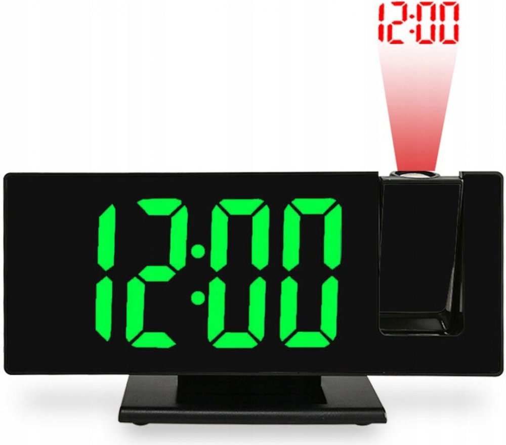 Multifunkční digitální budík s projekcí času a senzorem stmívání, možnost skrze USB port dobít telefon či jiné zařizení. Pouzdro: plast