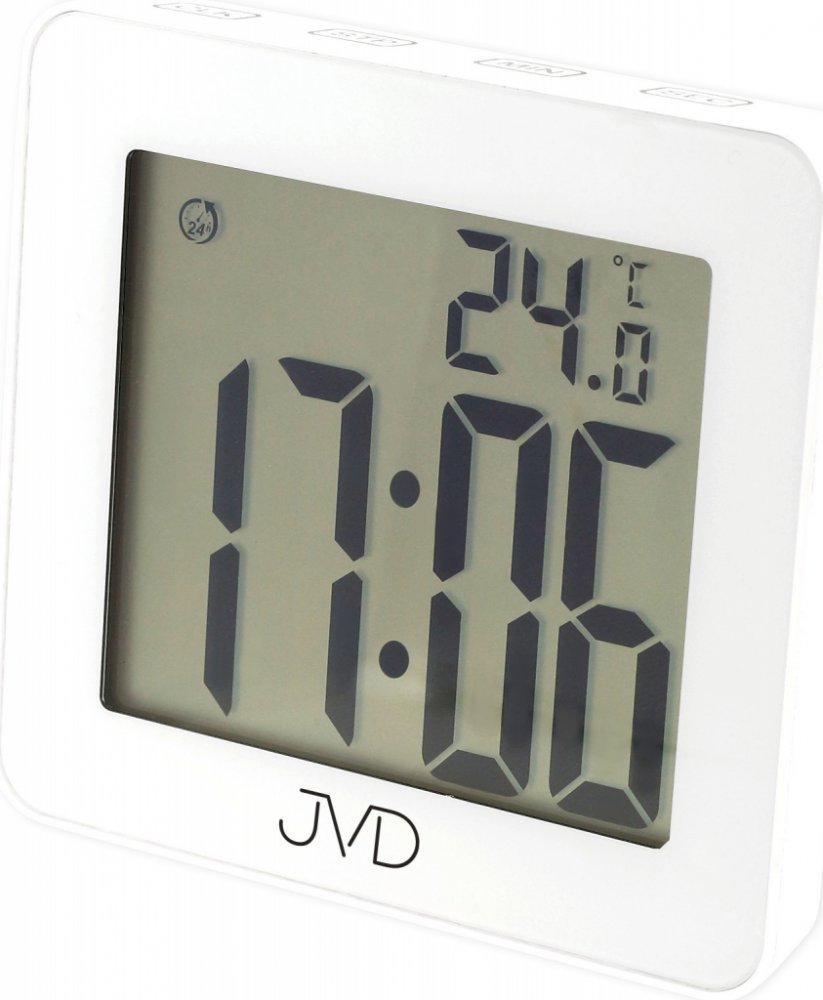 Tyto hodiny z řady JVD basic jsou vhodným ukazatelem času do prostředí kde je vysoká vlhkost vzduchu nebo mokro. Výborně se hodí do koupelny nebo například k bazénu. Nepropustí dovnitř těla žádnou vlhkost díky tomu, že strojek je kompletně uzavřen a izolován v plastovém pouzdře hodin. Hodiny zobrazují čas a teplotu v místnosti.