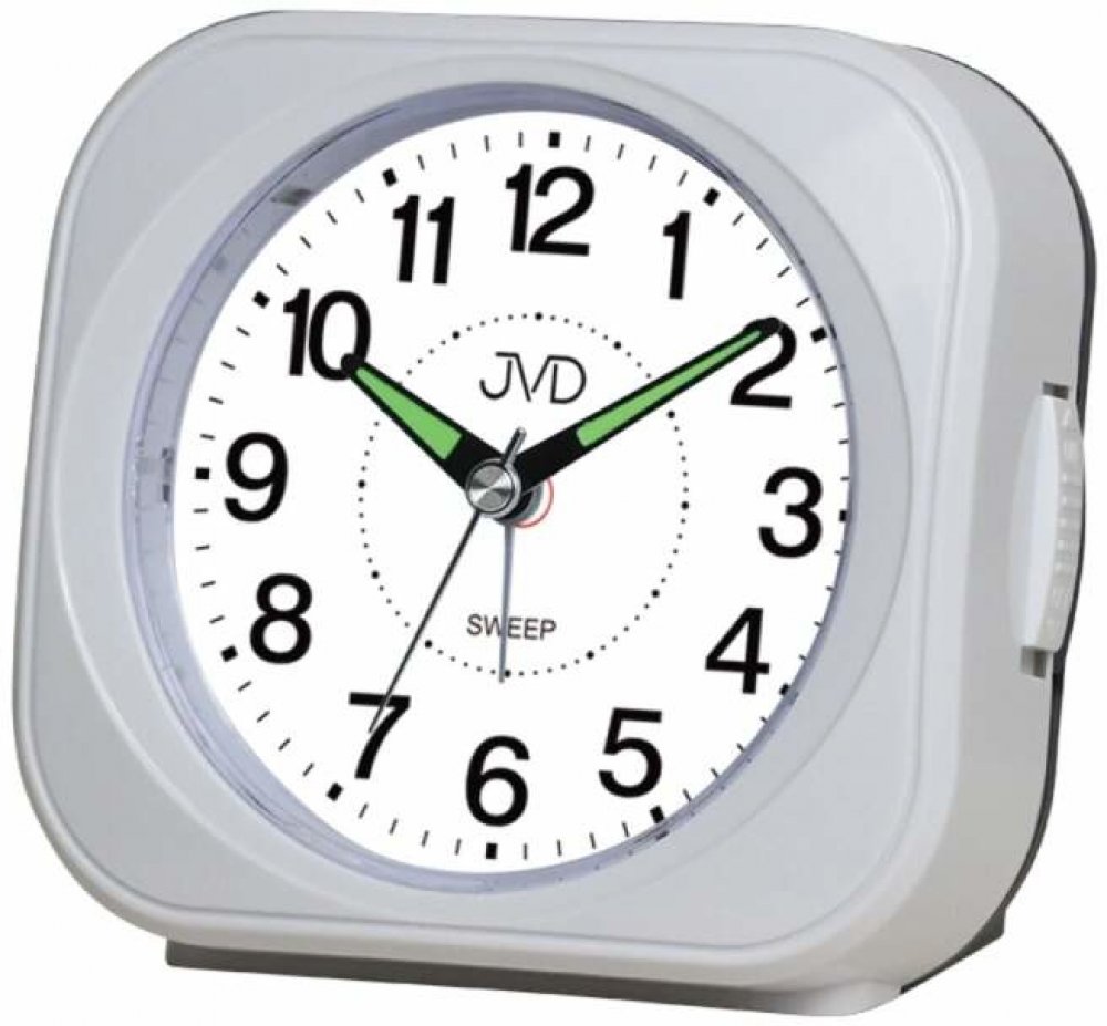 JVD Bílý tichý ručkový budík s LED osvětlením s plynulým chodem JVD SRP1604.3