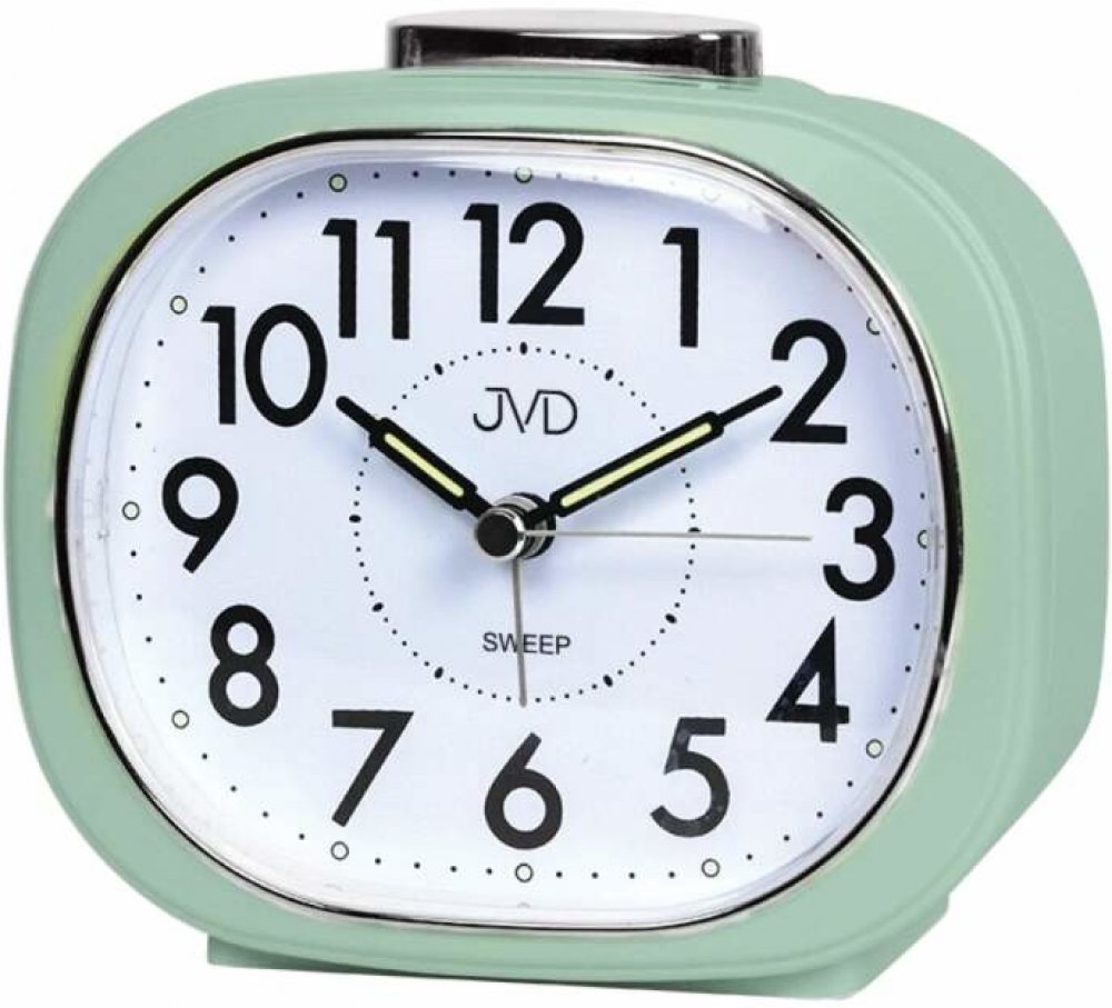 JVD Zelený tichý ručkový budík s osvětlením s plynulým chodem JVD SRP2010.2