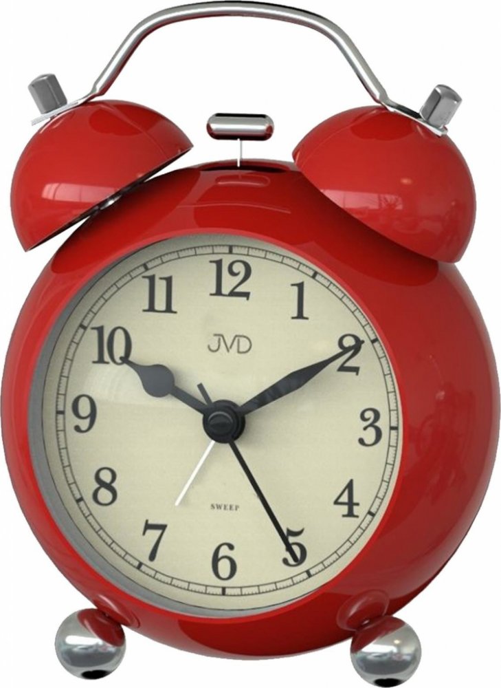 Klasický budík JVD s dobře čitelnými arabskými čísly, osvětlením a mechanickým zvoněním. Hlasitost buzení nezesiluje a po vypnutí nedojde k opakovanému buzení. Přesný čas zajistí quartzový (bateriový) strojek s plynulým chodem, který vás při spánku nebude rušit tikavým zvukem.