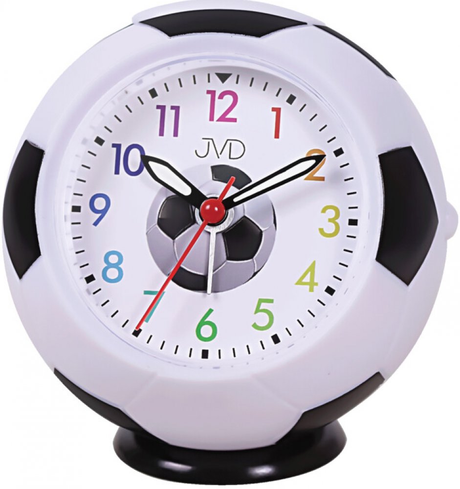 Tento budík JVD je vhodný zejména pro děti- malé fotbalové fanoušky. Originální tvar fotbalového míče s čepicí a velké číslice ocení hlavně při učení se času.
