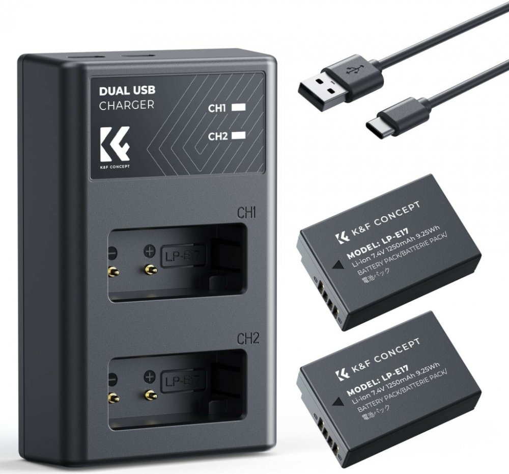 Prodlužte dobu fotografování s fotoaparátem Canon pomocí sady baterií K&F Concept LP-E17 1250 mAh a duální nabíječky. Tato tenká a kompaktní sada obsahuje dvě vysoce výkonné baterie a duální nabíječku USB-C/Micro B, která umožňuje současné nebo samostatné nabíjení pro efektivní pracovní postup a dlouhodobý výkon.Sada baterií a nabíječky K&F Concept LP-E17 je navržena tak, aby vaše fotoaparáty Cano...