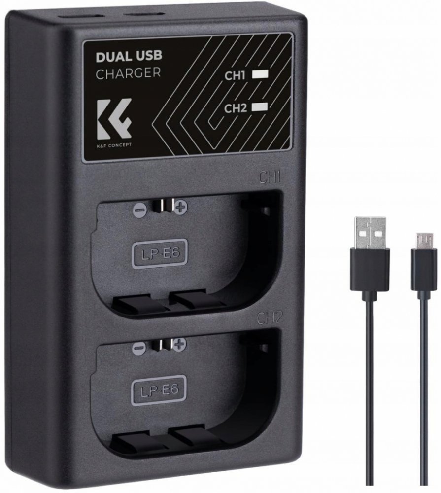 K&F Dvoukanálová nabíječka akumulátorů Kompatibilita: Canon EOS 5D Mark IV, 5D Mark III, 5DS, 5DS R, 5D Mark II, 6D, 6D Mark II, 7D, 7D Mark II, EOS90D/80D/70D/60D/60Da, EOS R5, EOS R6, EOS R
