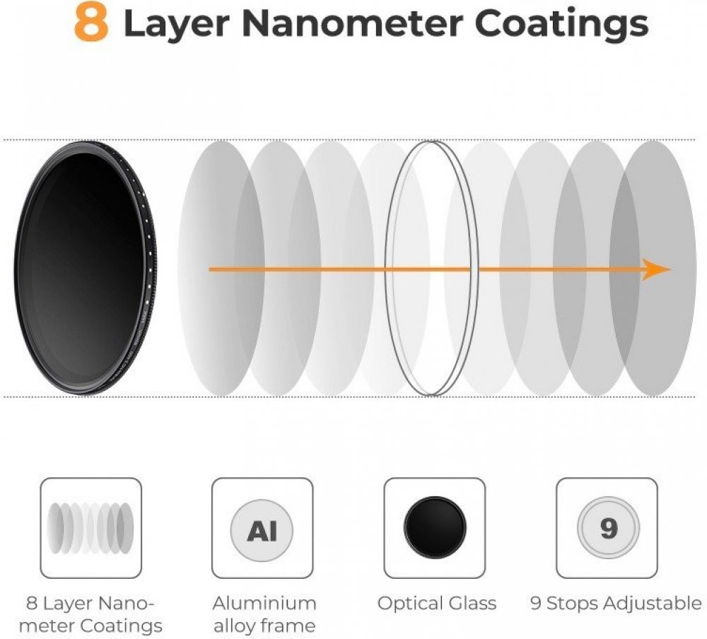 The K&F Concept Basic Fader NDX šedý filtr je nástroj, který provádí density adapter z ND2 to ND400, umožňující exponovat snížení z 1 všech cest do 9 oddílů. Tento model je kompatibilní s objektivem vybavený s 67mm filtr thread. Thanks to it, you will gain better control over depth of field and blur effect, giving your photos and more dynamic look. Na srdci filtru je HD optické sklo, guaranteeing není jen durability, ale také vynikající fotografie kvality. Thanks to slim 7 mm thick frame vyrobeno z aircraft-grade hliníku, budete chtít vignetting účinek. You'll also find a handy carrying case a microfiber cloth included. Main product features adjustable šedý filtr (ND2 - ND400) navržený pro práci s objektivem vybavený filtrem záběru 67 mm hladké přizpůsobení v rozsahu ND2 - ND400 může být rozšířena doba expozice od 1 do 9 přípustné divize 7mm vysoké kvality optického skleněného rámu z trvalého hliníkového aloy protective case a mikrofibra clonu zahrnuto Další expoziční ovládání K&F Concept Basic Fader NDX Gray Filtr ND2 - ND400 - 67 mm , a tento vzestup expozice čas fotografie, nebo otevřené vězení. With it, you bude rediscover the magic of photography. To vám pomůže snížit expozici z 1, až 9 aperture divisions. S více kontrolou expoziční čas nebo open opening, může být další manipulační hloubka pole a rozostření efektů, dávat a dynamický pohled na streams, vodopády, krajiny a další složení. Optical HD Glass Na srdci filtru je high-quality HD Optical Glass, jejichž guarantees pristine a crisp images. Schopnost infinitelně přizpůsobit density z ND2 do ND400 a může se snížit snížení světla reakcí senzoru bez znázornění barvy obrazu. Tento způsob vytvoříte unikátní rámečky, zatímco upravuje přírodní barvu palety vašich subjektů. Žádný vignetting efekt K&F Concept Basic Fader NDX ND2 - ND400 - 67 mm filtr rámečku je 7 mm thick. Slim design účinně avoids vignetting účinek, ale matka, která se chystá pracovat s. Your frames bude maintain uniformy barvy, s no darkening at edges. Easy to clean solidní hliník alloy garantuje durability and strength of the filtr. Jsme také find a mikrofibra clonu zahrnuta, perfektní pro removing smudges, fingerprints a drti z skleněného povrchu. Všechno, co je zavřeno v chytrém případě, že bude pomoc protéct filtr při přepravě. Wide kompatibilita K&F Concept Basic Fader NDX ND2 - ND400 - 67mm adjustable šedý filtr is compatible s most popular lenses na trhu (including Canon, Nikon, Sony, Fuji, Leica, Panasonic). All they need is to be equipped with a 67 mm diameter thread. No matter what equipment accompanies you on daily basis, K&F Concept Basic Fader NDX Adjustable Gray Filter bude být pravá volba při assemble vaše fotografické zařízení pro rok na come. Compatibility 67 mm filtr mount thread Specifikace modelu: adjustable šedý filtr K&F Concept Basic Fader NDX ND2 - ND400 - 67 mm materiály: aircraft hliníkový alloy, optický skleněný filtr typu: šedá (ND - neutrální density) expozice 9-stop thread diametr: 67 mm thickness: 7 mm hmotnost: 85 gr Set contents Adjustable šedý filtr K&F Concept Basic Fader