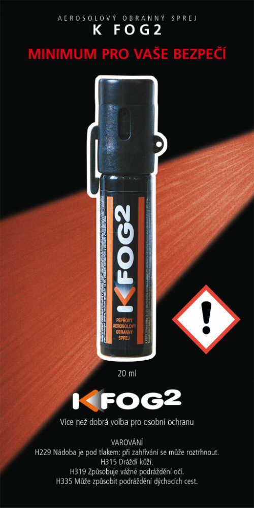- K-FOG obsahuje 5 % OC (oleo-resin capsicum) zajišťující okamžitý účinek na zasažené sliznice: dočasné oslepnutí, dušnost, dráždivý kašel a silné pálení pokožky