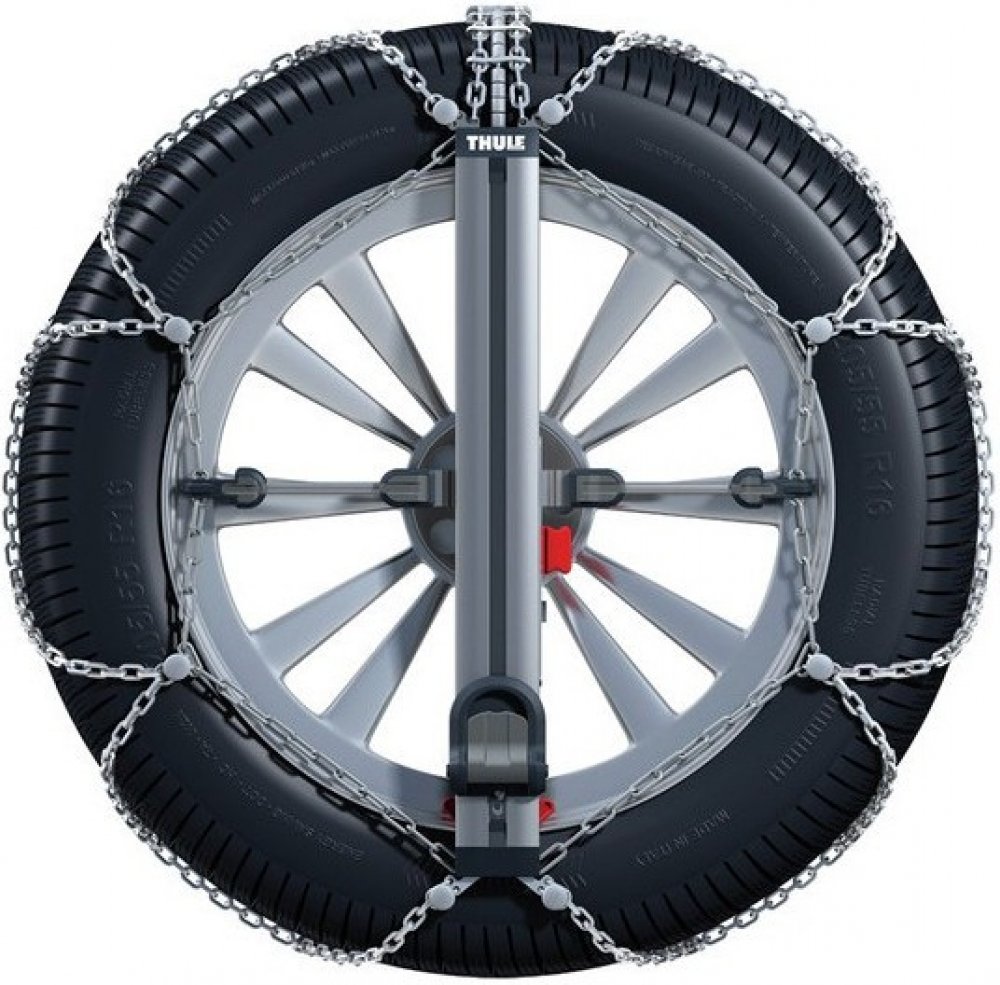 V okamžiku montáže se řetěz rozevře do šíře a maximálně se rozprostře, aby správně pokryl pneumatiku odshora dolů. Po nasazení řetězu se stlačením integrovaného pedálu do dolní polohy aktivuje napínací mechanismus.