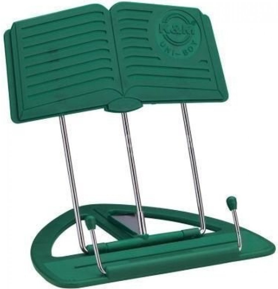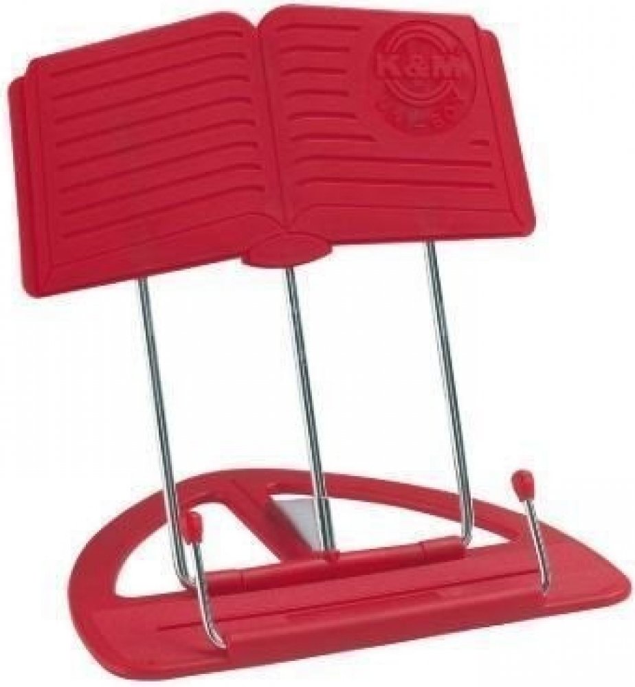 Stylový rozložitelný stolní stojánek vhodný pro uložení notového zápisu, magazínů nebo knih. Stojan je vyroben z kombinace plastu a oceli s velkým vyobrazením knihy. Stojan je díky kovové podpěře polohovatelný v úhlu od 10 ° do 50 ° a nabízí celkovou podopora plochu s rozměrem 173 x 230 mm. Hmotnost: 1.72 kg. Barevné provedení: Red.