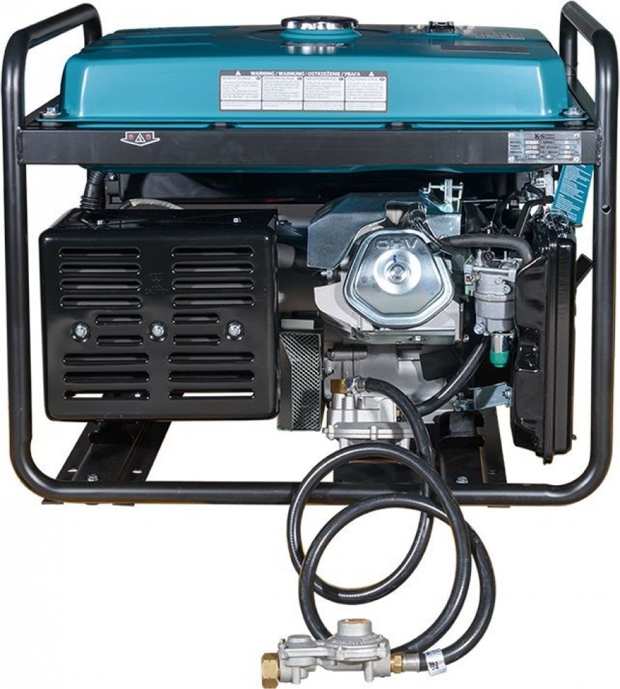 Provoz elektrocentrály na plyn zvyšuje životnost motoru. Součástí dodávky jsou všechna nezbytná připojení lahví: elektrocentrála je vybavena hadicí na zkapalněný plyn a dvěma redukčními ventily; stačí připojit elektrocentrálu k válci. Elektrocentrálu nelze připojit k plynovému potrubí. V případě potřeby lze modely na LPG/benzín snadno přepnout do benzínového režimu. Výkonný jednoválcový vzduchem chlazený čtyřtaktní motor K&S zajišťuje stabilní a spolehlivý provoz elektrocentrály.