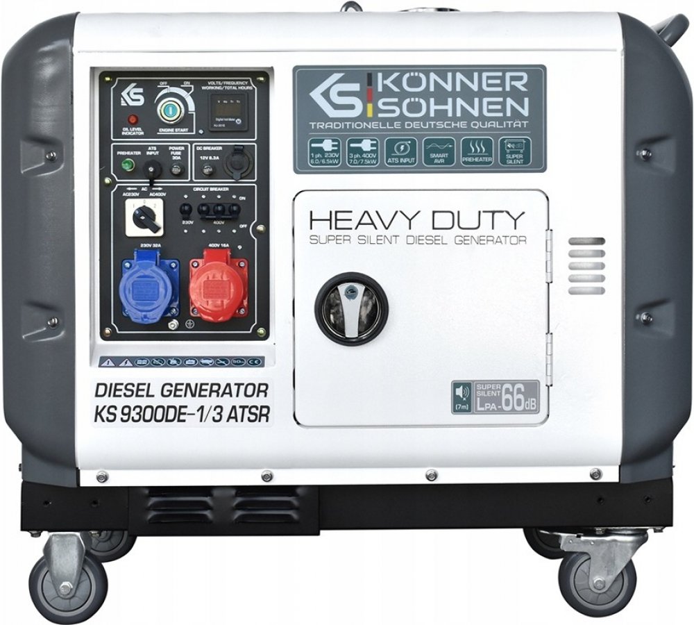 Dieselový generátor KS 9300DE-1/3 ATSR Super S je ideální pro použití v místech, kde dochází k častému přerušování dodávky elektrické energie. Je vybaven výstupem ATS pro připojení automatického spínače (ATS), který umožňuje automatické spuštění v případě přerušení dodávky elektrické energie, což je výhodné pro použití v soukromém sektoru i v zemědělství (na farmách, ve sklenících, skladech), v administrativních a vzdělávacích zařízeních a v mnoha dalších. Je nezbytné, aby systémy napájení budov byly vybaveny nouzovým zdrojem energie, který by v případě výpadku hlavní sítě mohl napájet osvětlení a ventilační systém i servery, na nichž jsou uloženy důležité informace.
