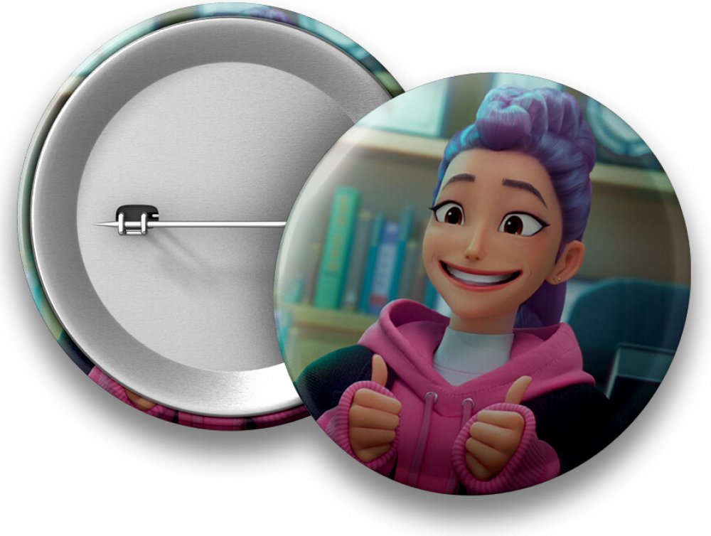 Rozšiř svou kolekci o stylovou placku s motivem Rumi Thumbs Up z K-Pop Demon Hunters.