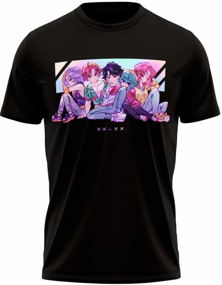 Bavlněné tričko se stylovým designem je velice povedeným kouskem pro fanouška anime K-Pop Demon Hunters.